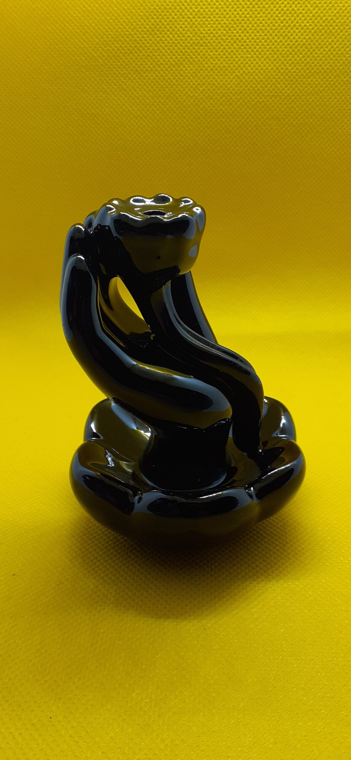 This beautiful back flow incense burner, allows the smoke to flow down the hand and into the lotus blossom. Back Flow cones are necessary to create the magical effect as illustrated below.