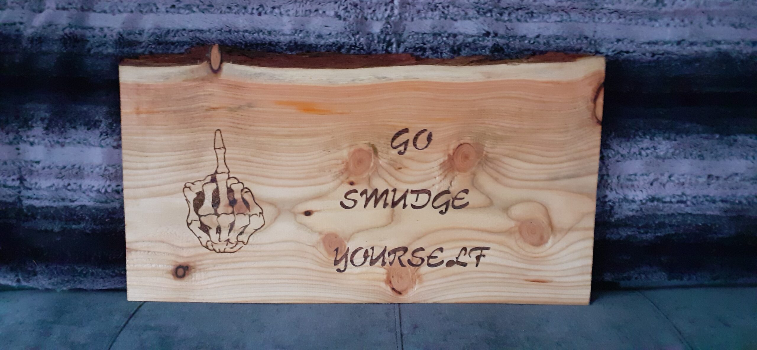 This beautiful handcrafted pyrography Larch plaque, with skeletal hand design measures 11″ x 21″ and has an oiled finish. It is suitable for hanging indoors or outside.