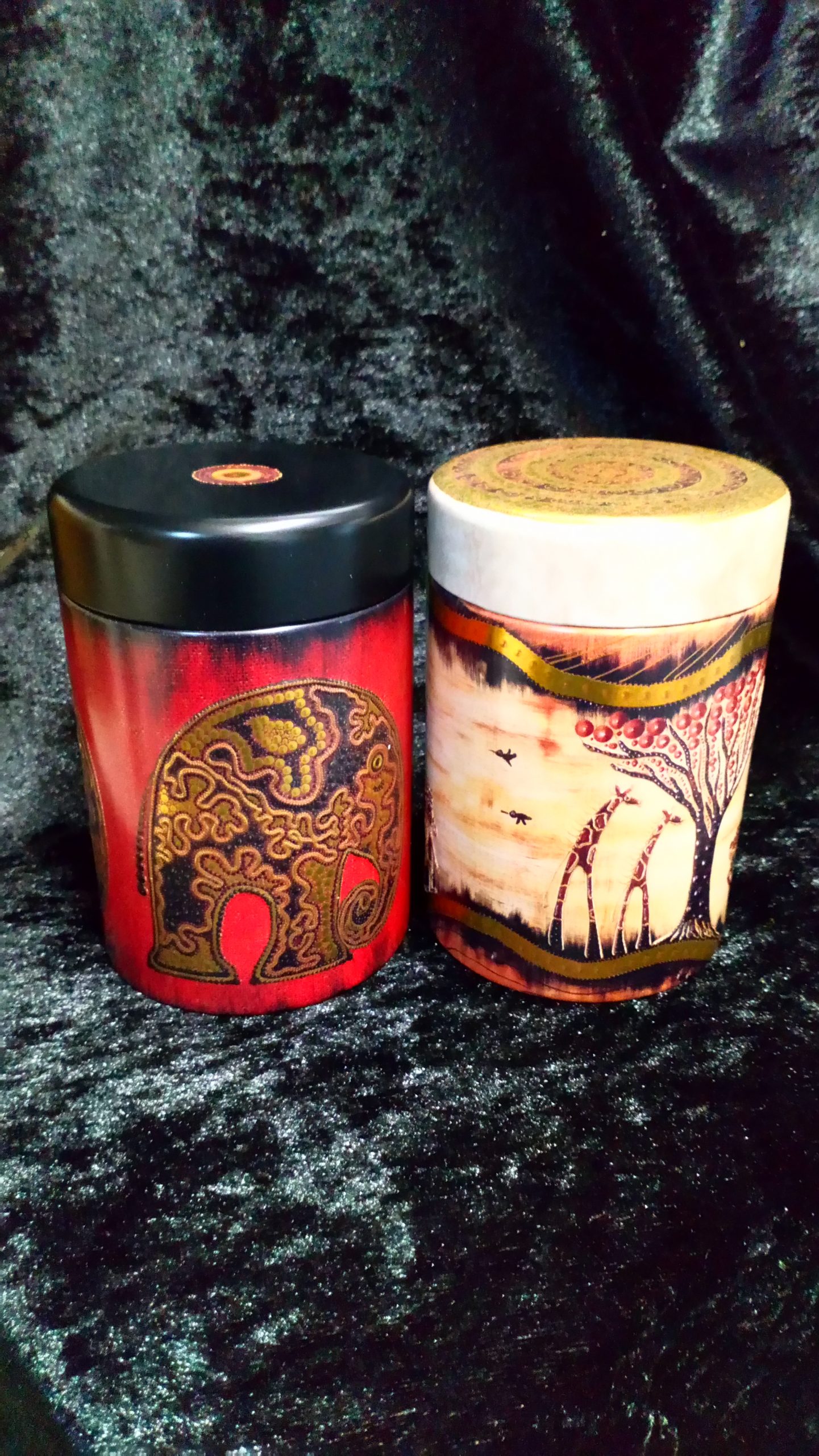 A beautiful tea caddy with giraffe design. Hold 100g of tea.